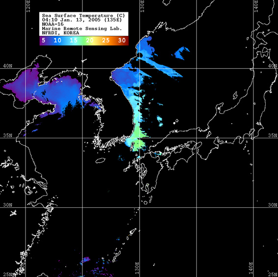 더 많은 위성 수온영상자료(1996년-현재)는 해양원격탐사실 홈페이지로