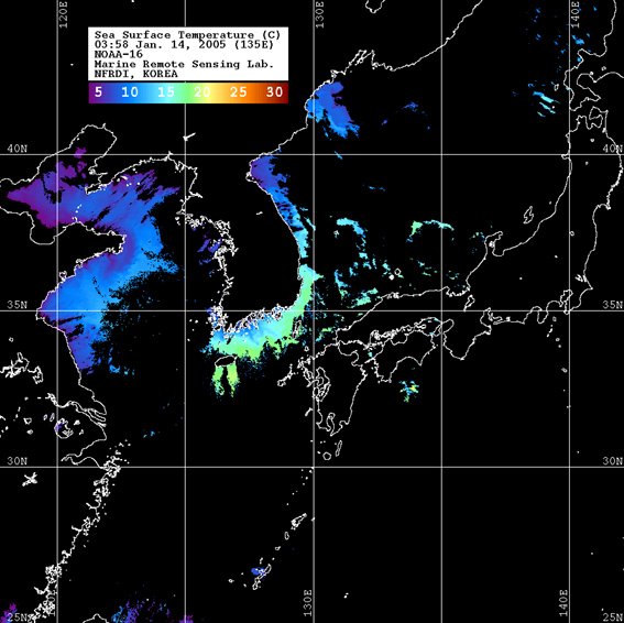 더 많은 위성 수온영상자료(1996년-현재)는 해양원격탐사실 홈페이지로