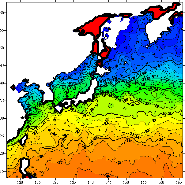 o 2005년 1월 15일 북서태평양 광역해양 수온분포 입니다.