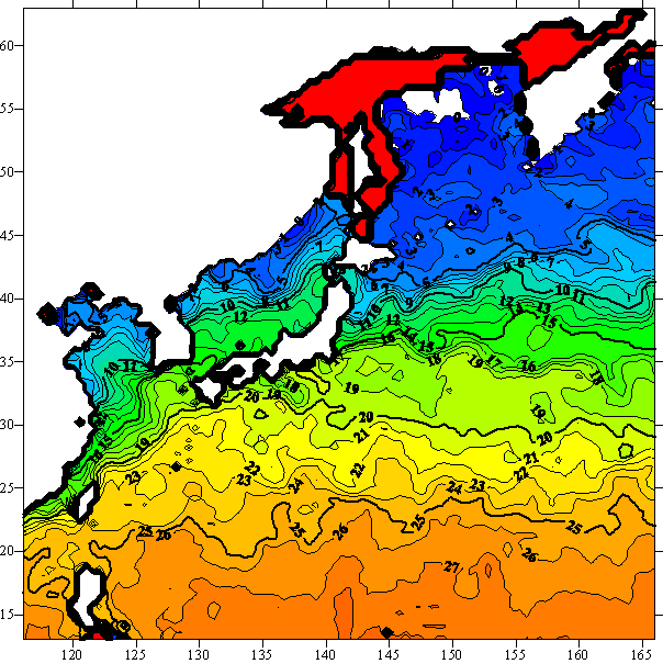 o 2005년 1월 26일 북서태평양 광역해양 수온분포 입니다.