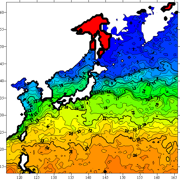 o 2005년 1월 30일 북서태평양 광역해양 수온분포 입니다.