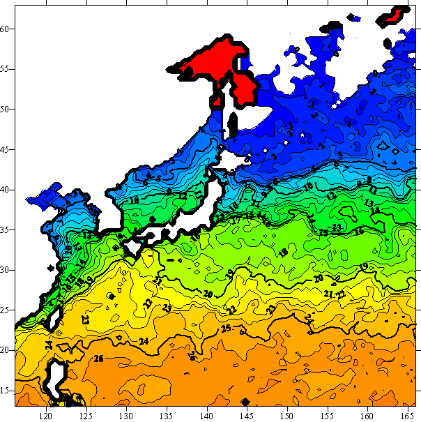 o 2005년 1월 31일 북서태평양 광역해양 수온분포 입니다.
