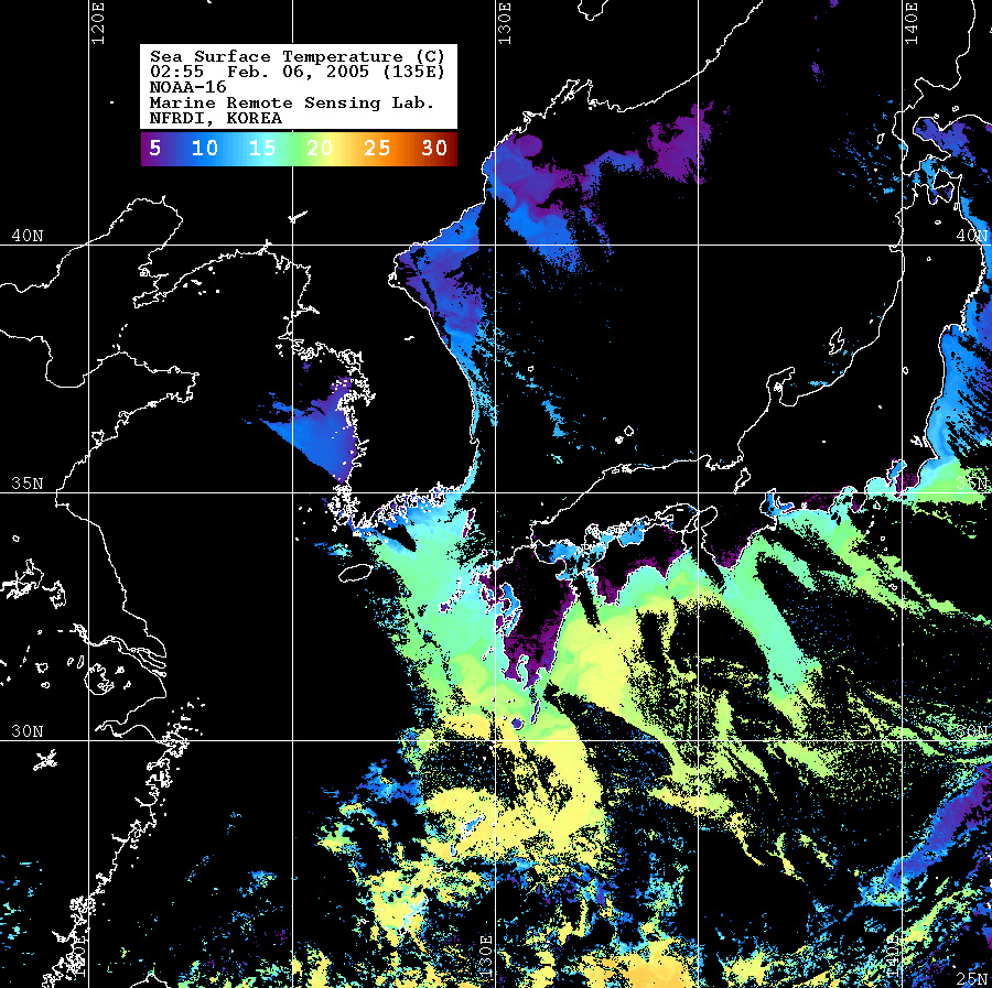 더 많은 위성 수온영상자료(1996년-현재)는 해양원격탐사실 홈페이지로