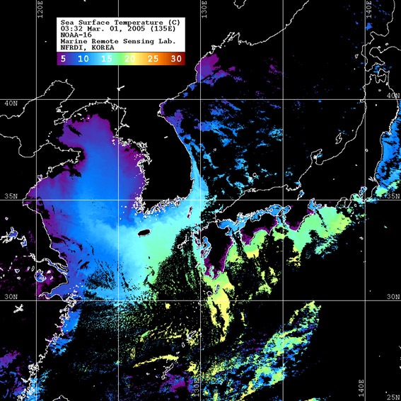 더 많은 위성 수온영상자료(1996년-현재)는 해양원격탐사실 홈페이지로