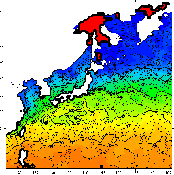 o 2005년 03월 04일 북서태평양 광역해양 수온분포 입니다.