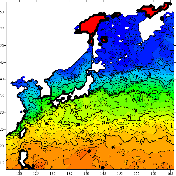 o 2005년 03월 06일 북서태평양 광역해양 수온분포 입니다.