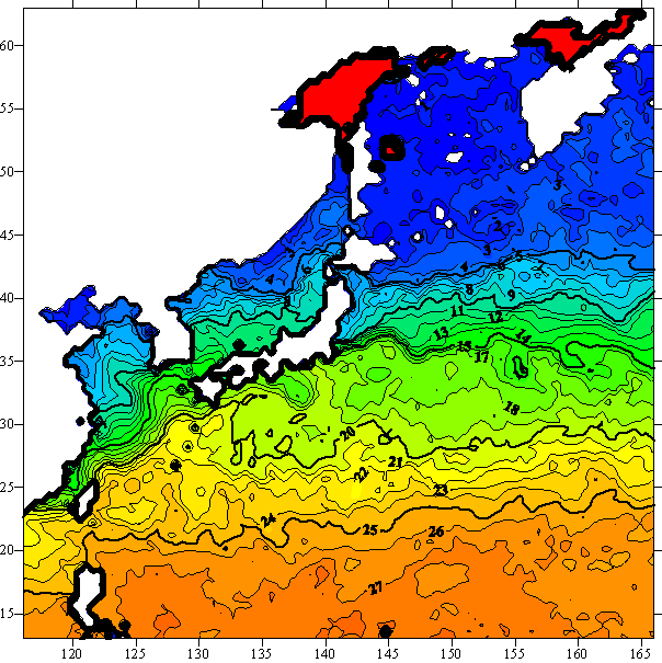 o 2005년 03월 07일 북서태평양 광역해양 수온분포 입니다.