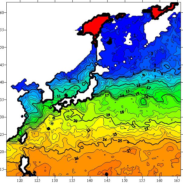 o 2005년 03월 08일 북서태평양 광역해양 수온분포 입니다.