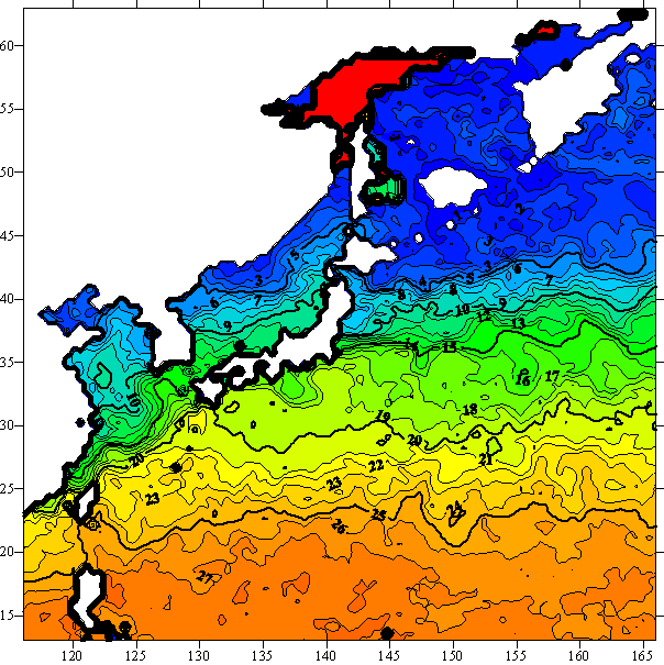 o 2005년 03월 24일 북서태평양 광역해양 수온분포 입니다.