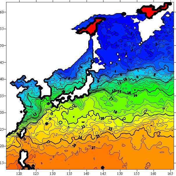 o 2005년 04월 02일 북서태평양 광역해양 수온분포 입니다.