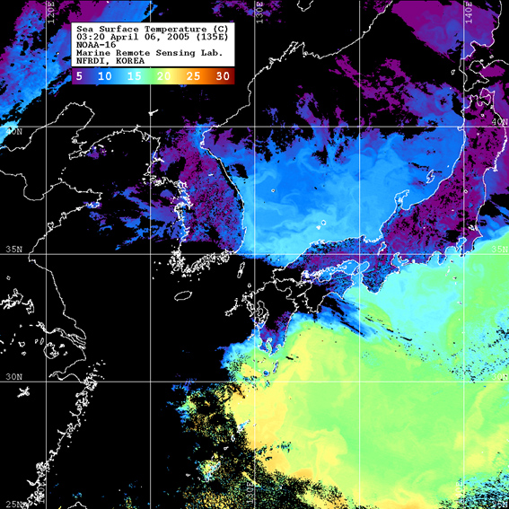 더 많은 위성 수온영상자료(1996년-현재)는 해양원격탐사실 홈페이지로