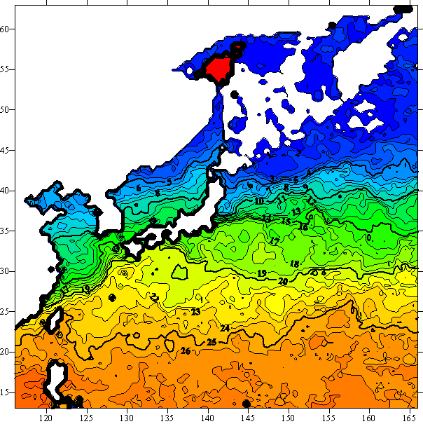 o 2005년 04월 08일 북서태평양 광역해양 수온분포 입니다.