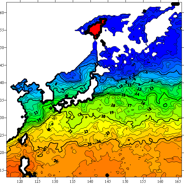 o 2005년 04월 11일 북서태평양 광역해양 수온분포 입니다.
