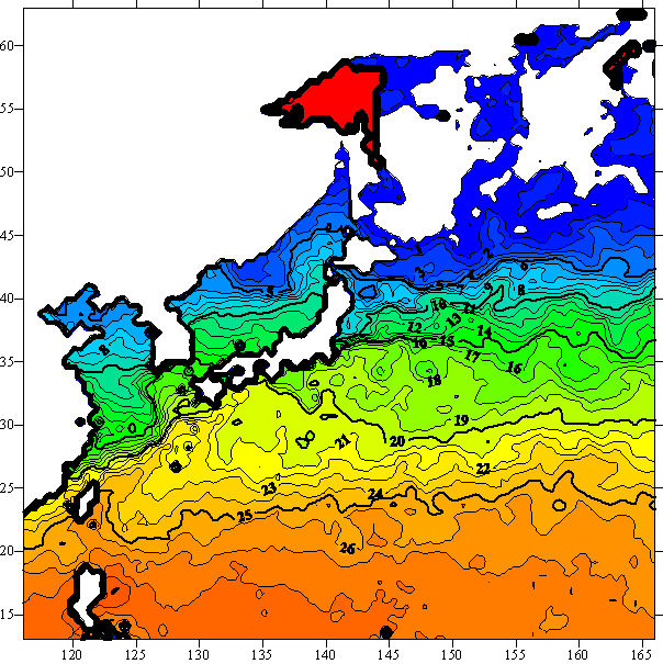 o 2005년 04월 14일 북서태평양 광역해양 수온분포 입니다.