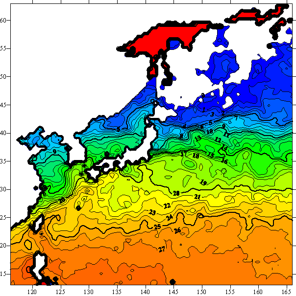 o 2005년 04월 17일 북서태평양 광역해양 수온분포 입니다.