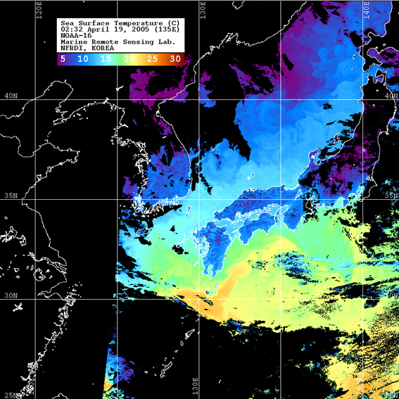 더 많은 위성 수온영상자료(1996년-현재)는 해양원격탐사실 홈페이지로