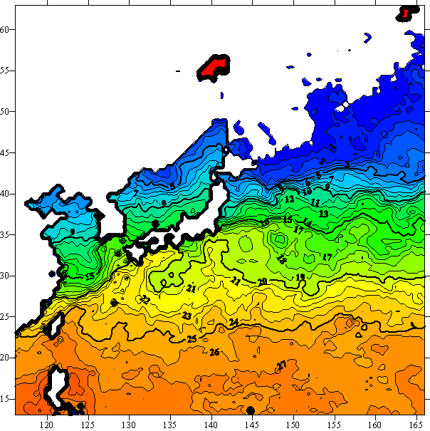 o 2005년 04월 20일 북서태평양 광역해양 수온분포 입니다.