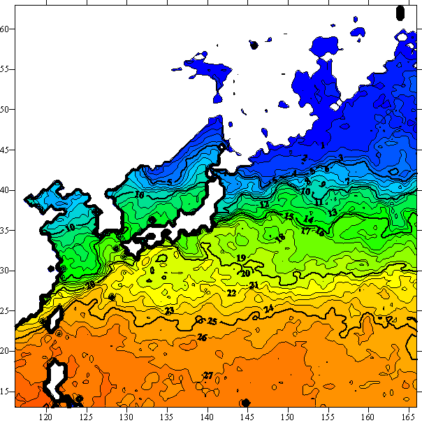 o 2005년 04월 24일 북서태평양 광역해양 수온분포 입니다.