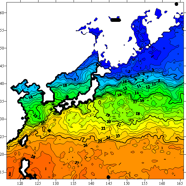 o 2005년 04월 26일 북서태평양 광역해양 수온분포 입니다.
