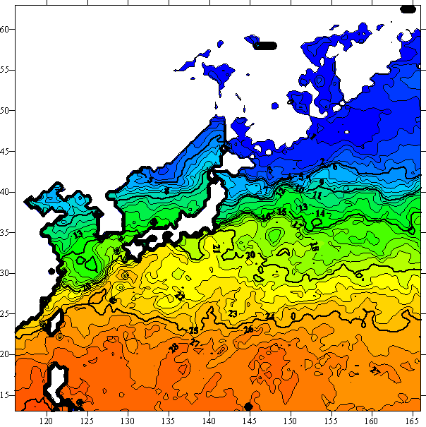 o 2005년 04월 27일 북서태평양 광역해양 수온분포 입니다.