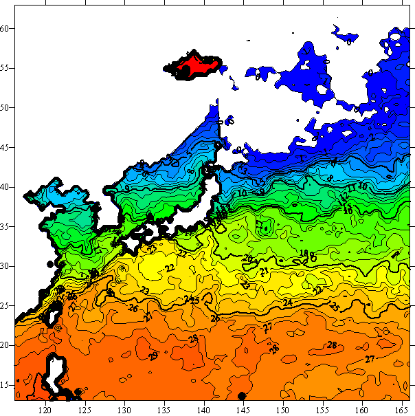 o 2005년 05월 01일 북서태평양 광역해양 수온분포 입니다.