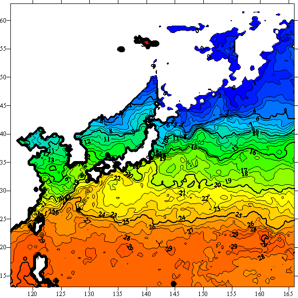 o 2005년 05월 04일 북서태평양 광역해양 수온분포 입니다.
