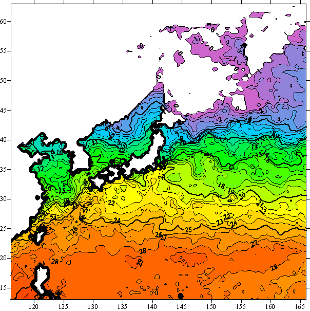 o 2005년 05월 06일 북서태평양 광역해양 수온분포 입니다.