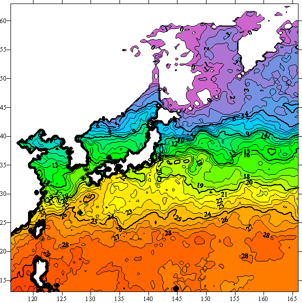 o 2005년 05월 09일 북서태평양 광역해양 수온분포 입니다.