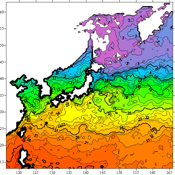 o 2005년 05월 16일 북서태평양 광역해양 수온분포 입니다.