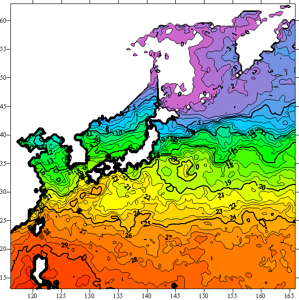 o 2005년 05월 17일 북서태평양 광역해양 수온분포 입니다.