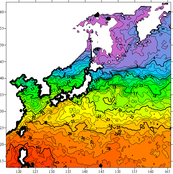 o 2005년 05월 19일 북서태평양 광역해양 수온분포 입니다.