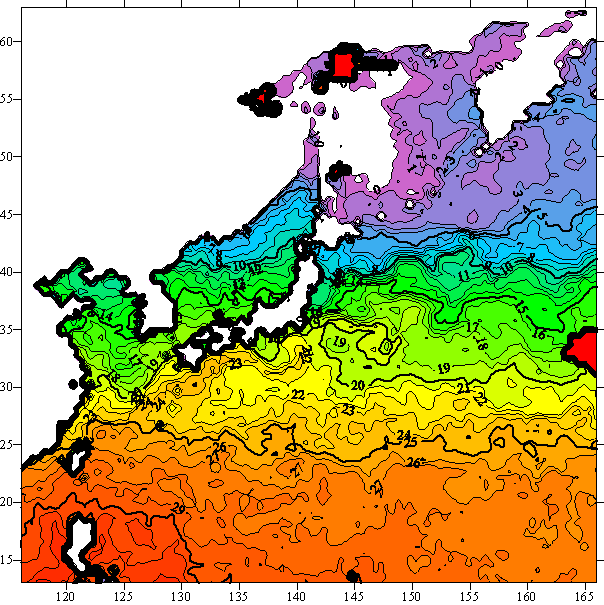 o 2005년 05월 20일 북서태평양 광역해양 수온분포 입니다.