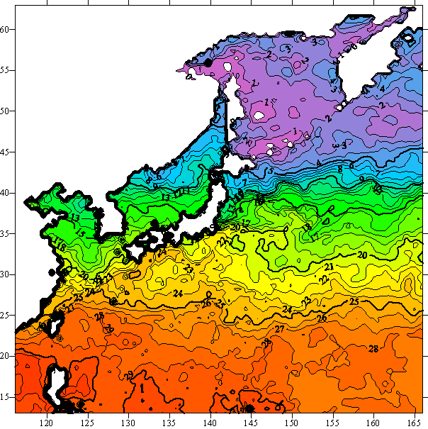 o 2005년 05월 23일 북서태평양 광역해양 수온분포 입니다.