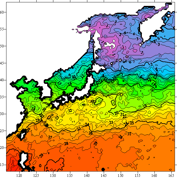 o 2005년 05월 27일 북서태평양 광역해양 수온분포 입니다.