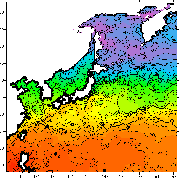 o 2005년 05월 28일 북서태평양 광역해양 수온분포 입니다.