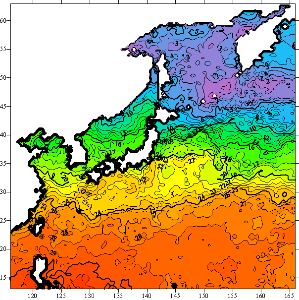 o 2005년 06월 02일 북서태평양 광역해양 수온분포 입니다.