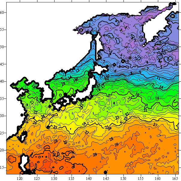 o 2005년 06월 11일 북서태평양 광역해양 수온분포 입니다.