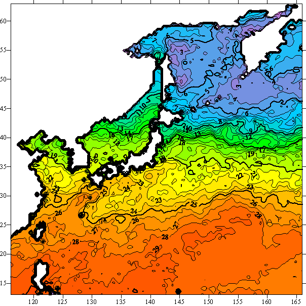 o 2005년 06월 13일 북서태평양 광역해양 수온분포 입니다.