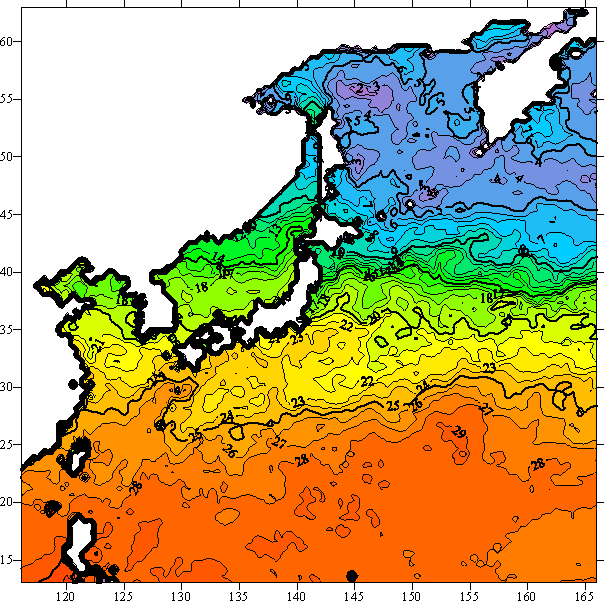 o 2005년 06월 14일 북서태평양 광역해양 수온분포 입니다.