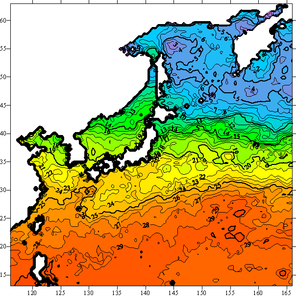 o 2005년 06월 15일 북서태평양 광역해양 수온분포 입니다.