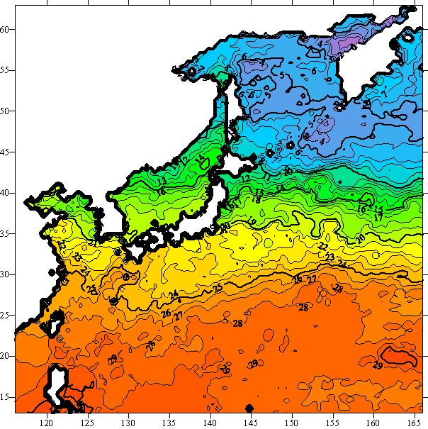 o 2005년 06월 16일 북서태평양 광역해양 수온분포 입니다.