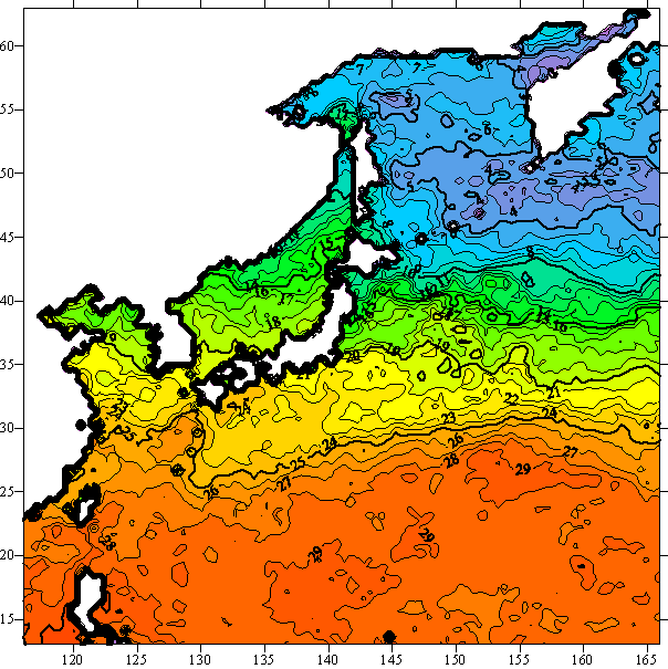 o 2005년 06월 17일 북서태평양 광역해양 수온분포 입니다.