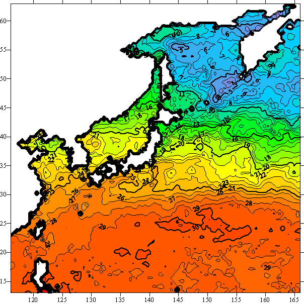 o 2005년 06월 28일 북서태평양 광역해양 수온분포 입니다.