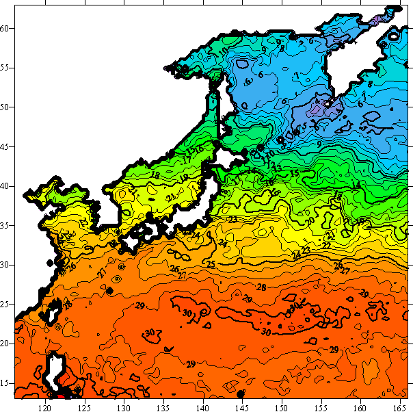 o 2005년 06월 29일 북서태평양 광역해양 수온분포 입니다.