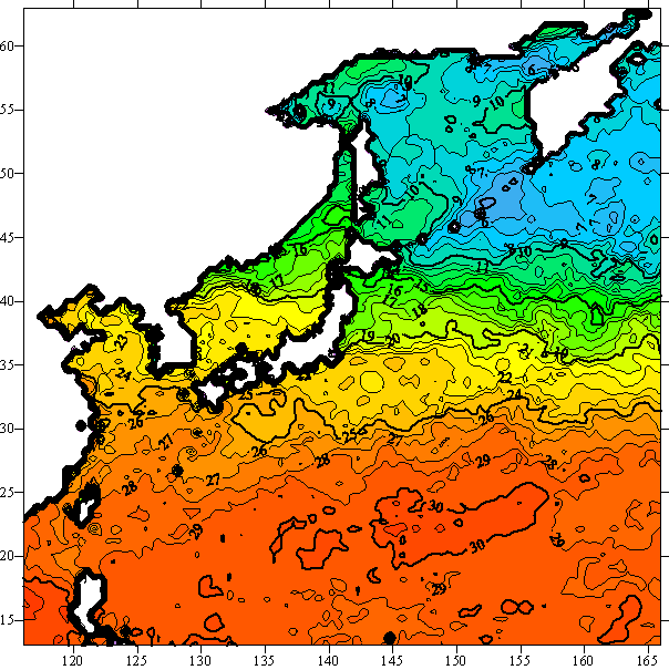 o 2005년 07월 06일 북서태평양 광역해양 수온분포 입니다.