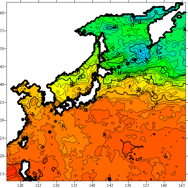 o 2005년 09월 10일 북서태평양 광역해양 수온분포 입니다.