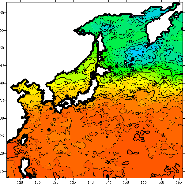 o 2005년 09월 19일 북서태평양 광역해양 수온분포 입니다.