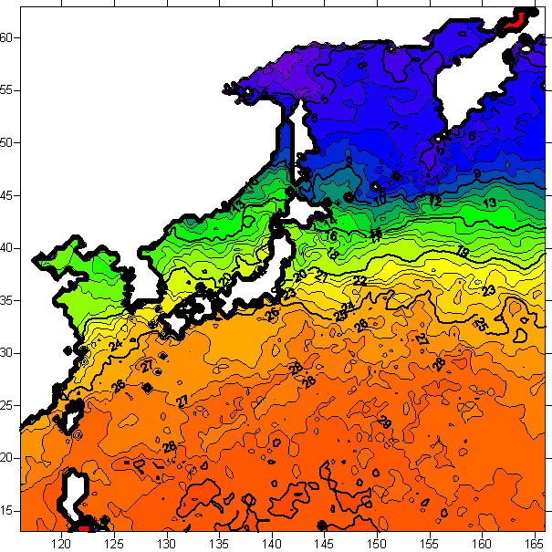 o 2005년 10월 30일 북서태평양 광역해양 수온분포 입니다.
