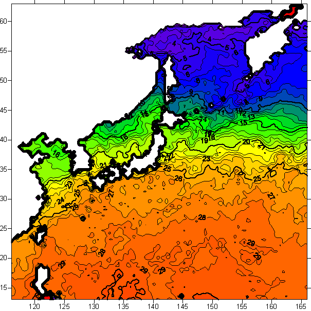 o 2005년 10월 31일 북서태평양 광역해양 수온분포 입니다.