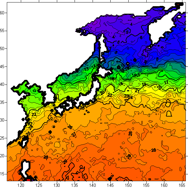 o 2005년 11월 01일 북서태평양 광역해양 수온분포 입니다.